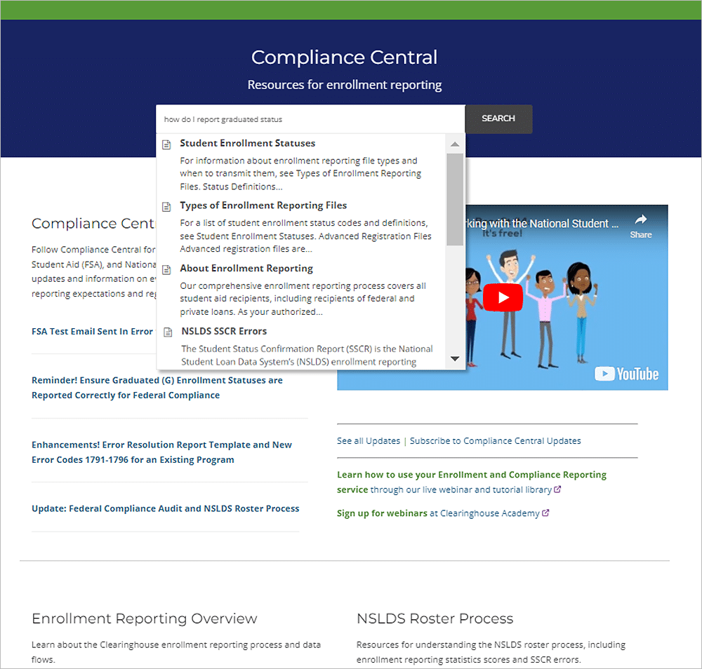 - The latest compliance and Enrollment Reporting updates from the Clearinghouse